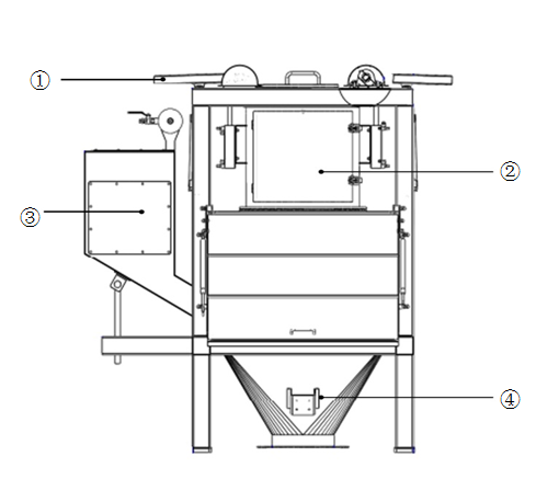 ①拍打裝置 ②受料倉(cāng)組件 ③收塵組件 ④投料站倉(cāng)體
