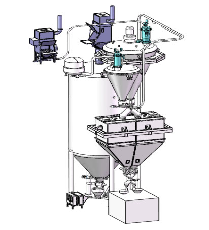 工作原理: 它通過人工拆袋自動(dòng)傾倒等步驟使物料靠重力落進(jìn)貯斗中來完成拆袋卸料工作,作業(yè)中產(chǎn)生的粉塵被所攜帶的除塵裝置濾除使工人能在清潔的環(huán)境中輕松地工作。